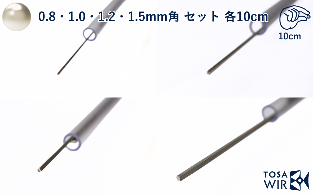 【お試し用】洋白 正角線 硬さ ハード 全サイズALL 磨き済 真鍮 角形 巻線 0.8・1.0・1.2・1.5mm 角×10cm 単位 カット販売 アクセサリー 彫金 ワイヤーアート 針金 材料